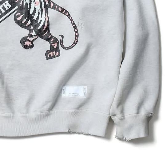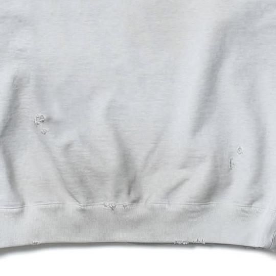 フェード感を出した度詰めの裏毛素材をベースに、サベージ加工を施したクルーネックプルオーバー。