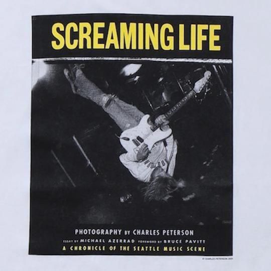 シアトルにて1990年代初頭のグランジシーンをとらえた写真集"SCREAMING LIFE"のアートワークをプリントしたショートスリーブTシャツ。