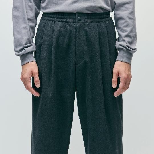 上品な表情を持つ梳毛ウール調素材を使用したイージーパンツ。
