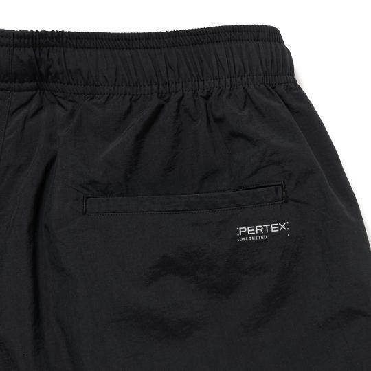 耐久防水を誇るPERTEX®のナイロンタッサー生地を使用したトラックパンツ。