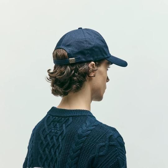 コットンツイル生地を使用したダッドキャップ。フロントに両者のロゴを刺繍。