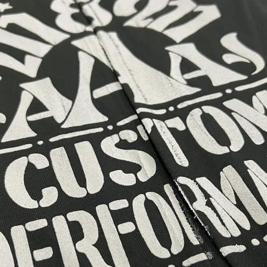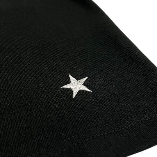 両前袖内側にはAAAデザイン、左胸に焼き印ロゴをプリントし、バック裾には星の刺繍が入っています。