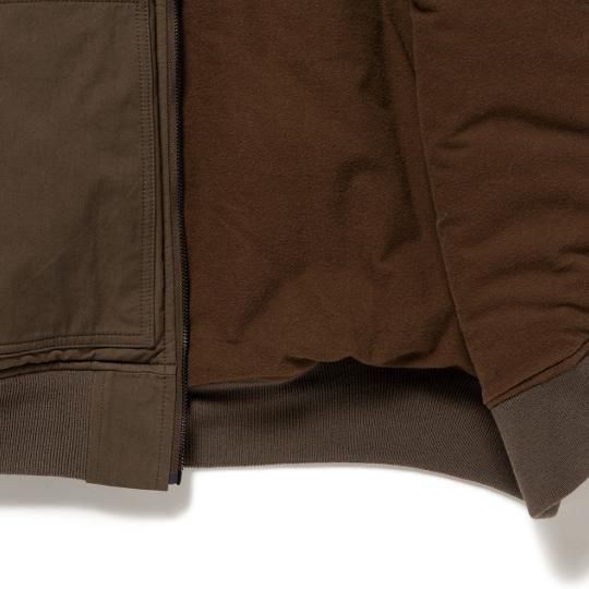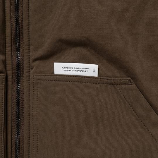 高密度のウェザー生地を使用した中綿入りジップアップジャケット。